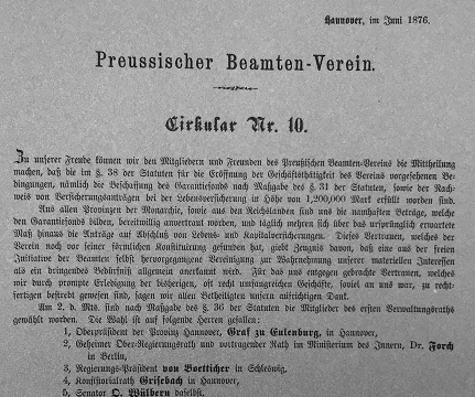 Am 29. Oktober 1875 gründet Otto Hoffman den Preußischen Beamten-Verein auf Gegenseitigkeit, die heutige Hannoversche Lebensversicherung AG.
