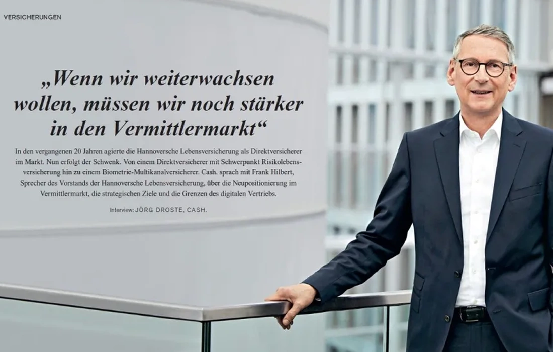 Im Interview mit Journalist Jörg Droste stellt Frank Hilbert die notwendige Entwicklung der Hannoversche Lebensversicherung vom Direktversicherer mit Schwerpunkt Risikolebensversicherung hin zu einem Biometrie-Multikanalversicherer heraus.