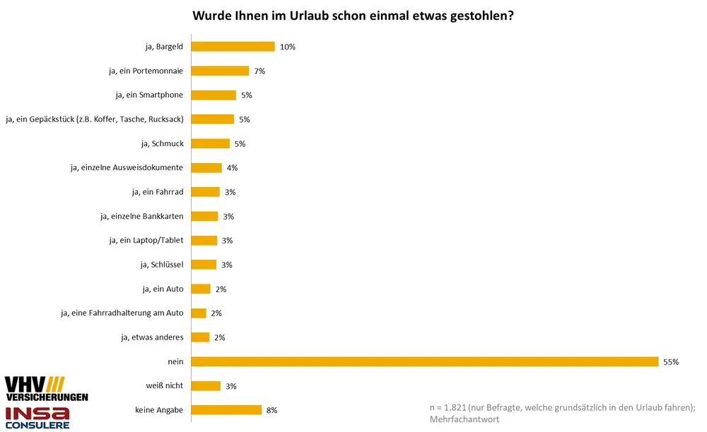 - Mit dem Alter steigt der Anteil der Menschen, die noch nie im Urlaub bestohlen wurden