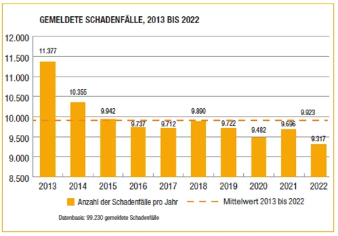 Anzahl der Schadenfälle: leichter Rückgang seit 2019